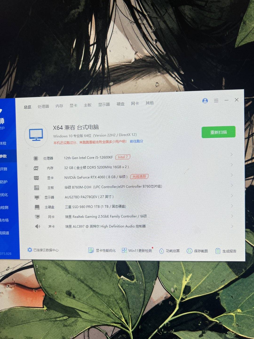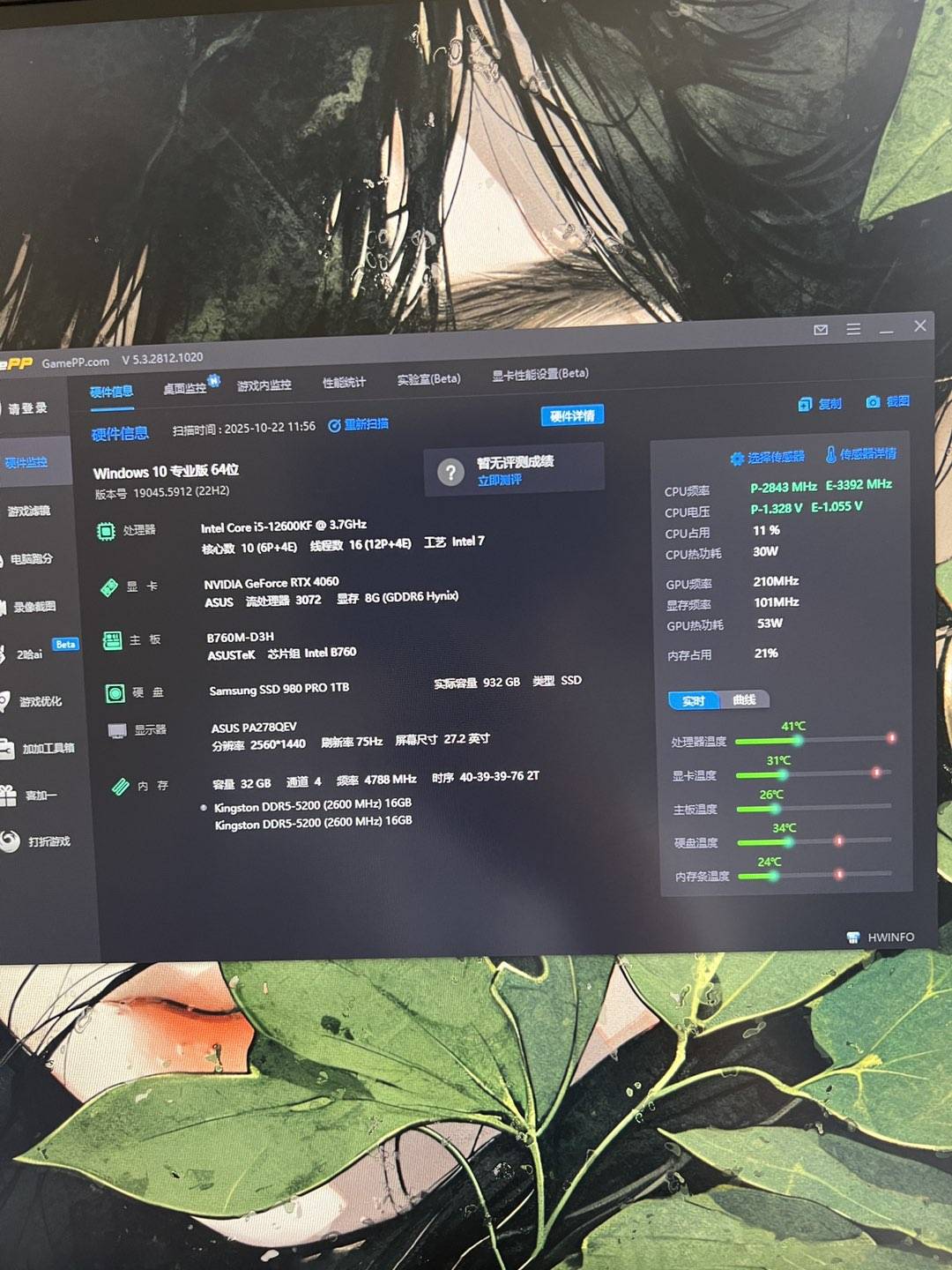 内存:金士顿野兽 16g×2 5200(32GB)