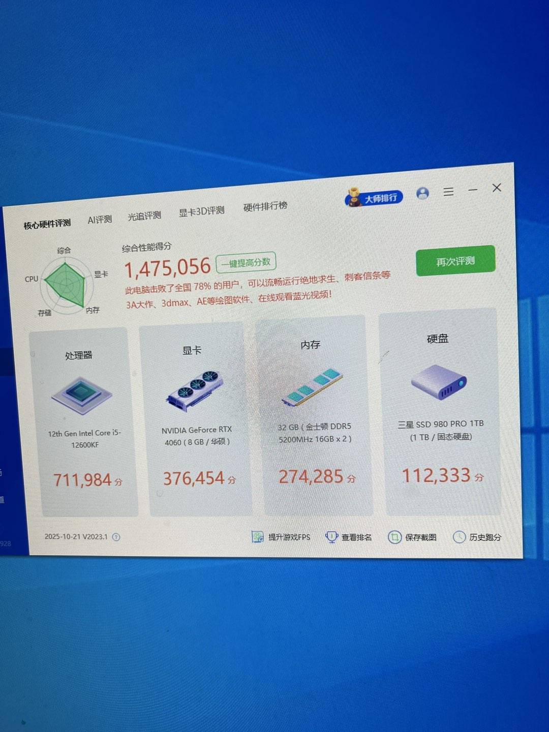 硬盘:三星980pro 1TB 固态硬盘