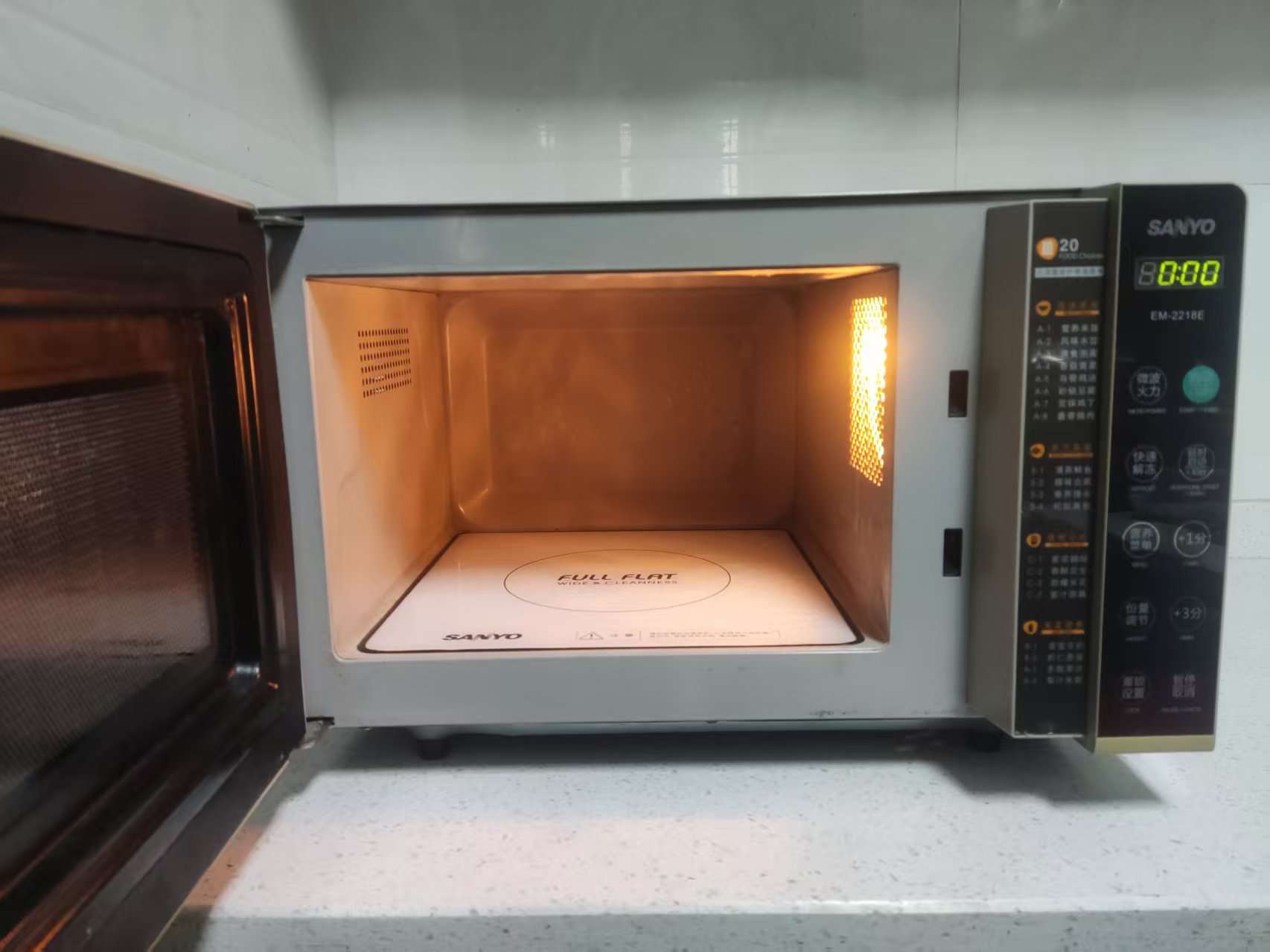 三洋微波炉EM-2218E,容量22L。机器成色不错,内部干净整洁,功能完好。加热均匀快速。适合家用,同城可以送货。(二手物品有使用痕迹、介意勿扰)