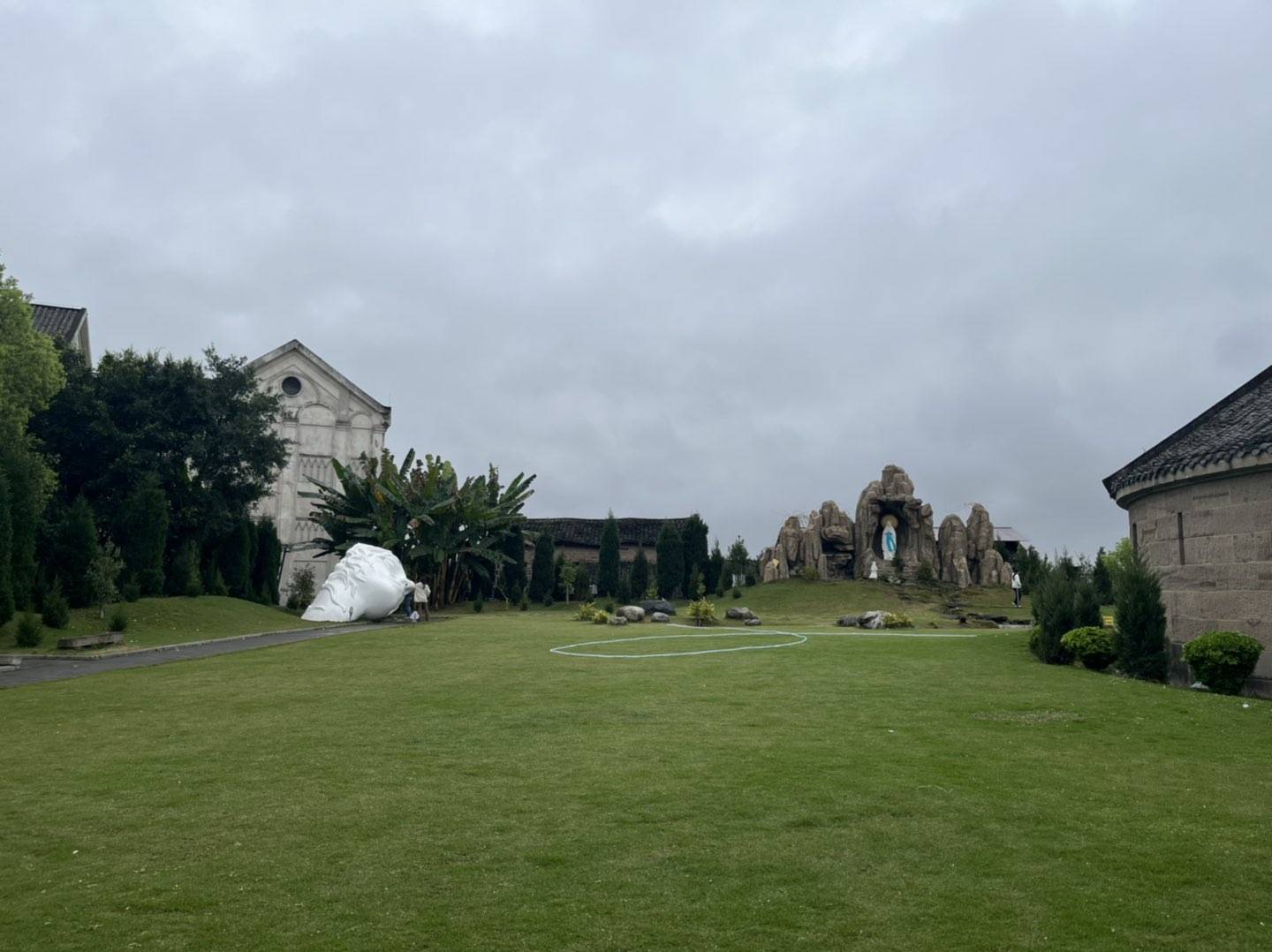 正兴这里有个叫露德堂的地方,是一个天主教堂,白色的建筑搭配绿色草坪,很有感觉,看到好多拍婚纱照的来拍照,今天下雨 天气好过来耍应该很不错