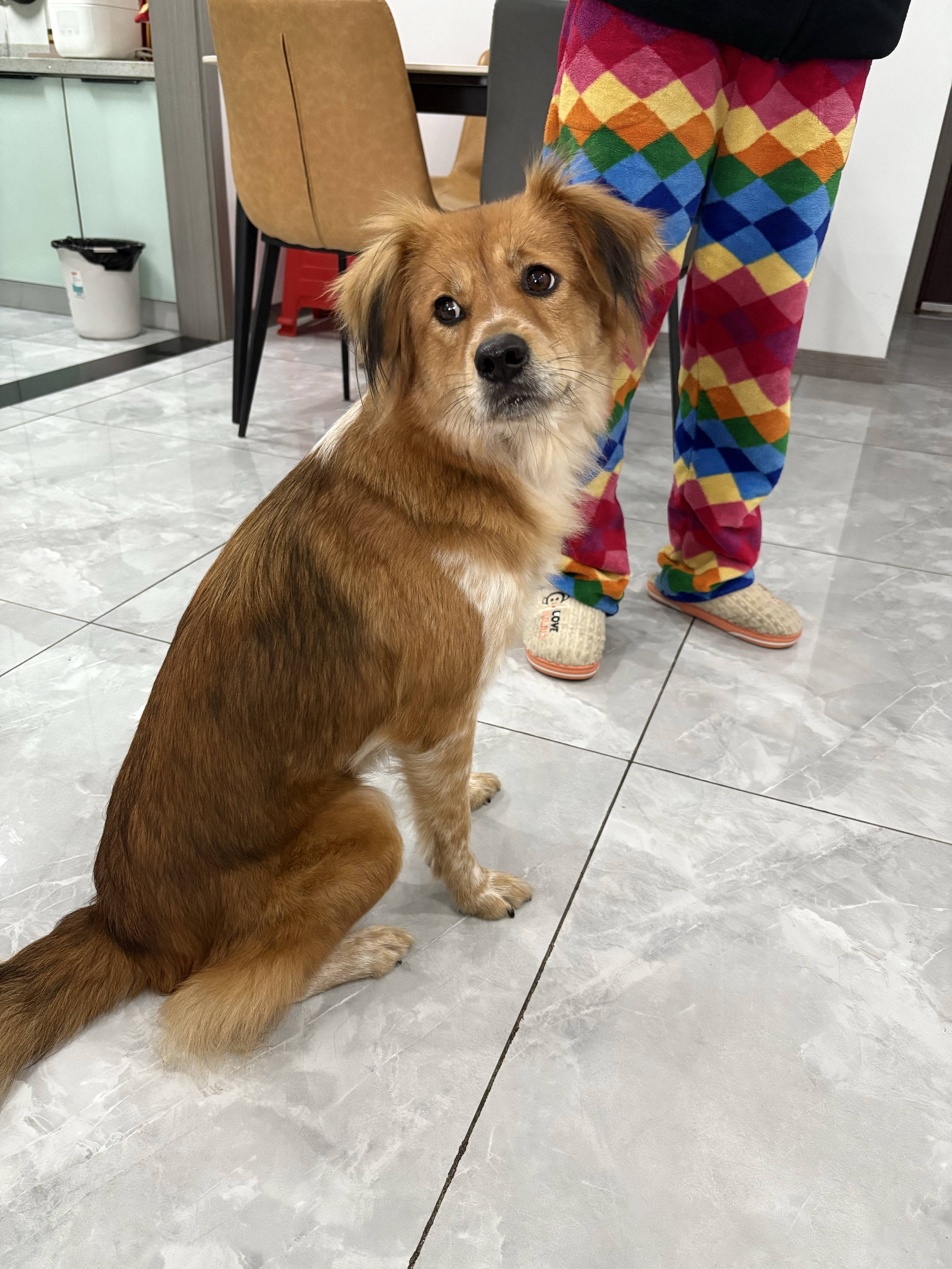 品种:串串犬(黄白相间毛色)