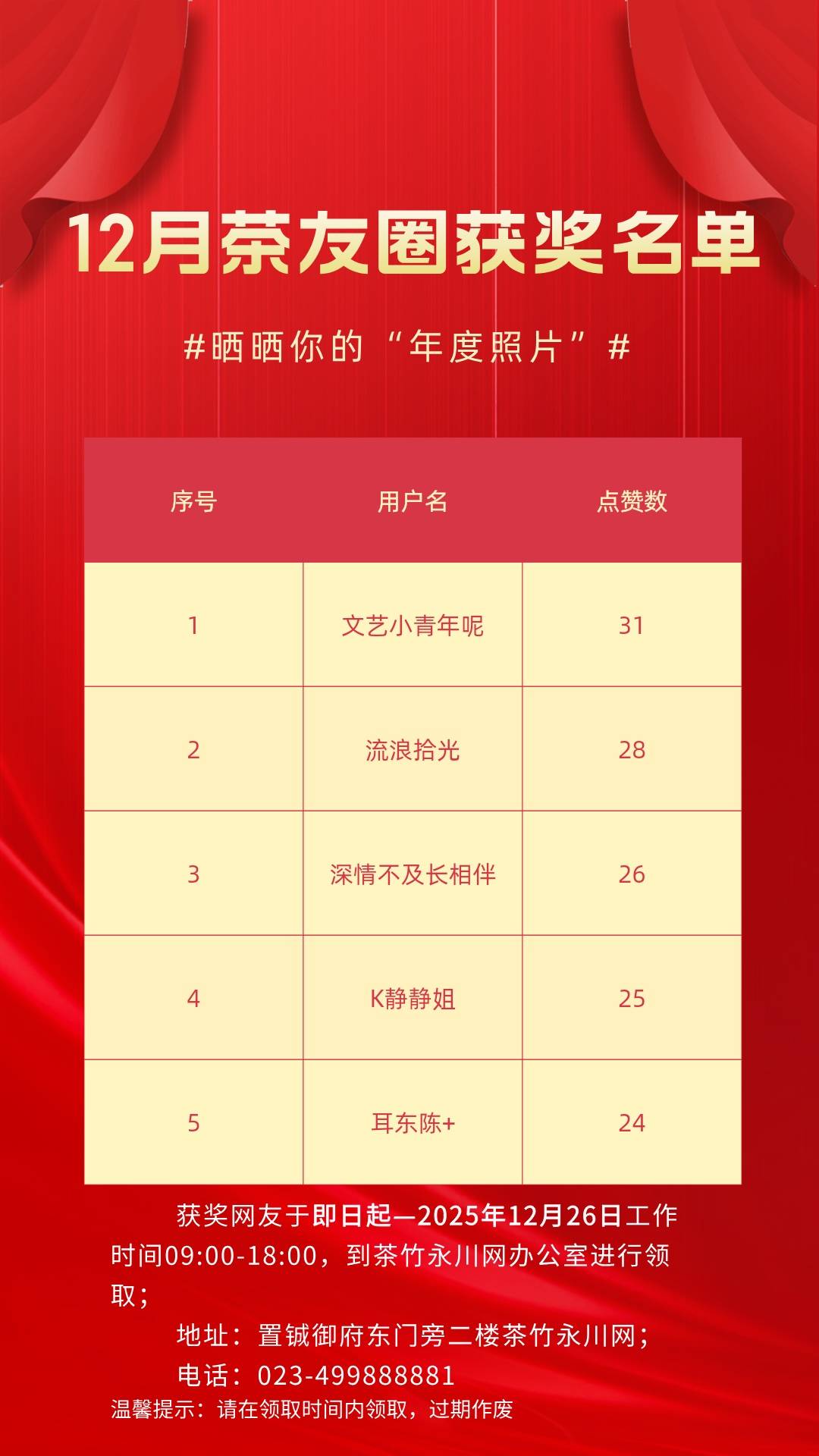 获奖名单和领奖时间12月22日9:00后另通知!